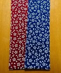 六尺はお尻を出すカタチですよ 幅17cm 長さ255cm 「あずき」と「青紺」があります あずきはキレイなエンジ色で古風な装い 青紺は青を基調とした紺なので若々しく どちらも桜の白が映える色合い スタンダードな桜柄で誰でも使いやすいです